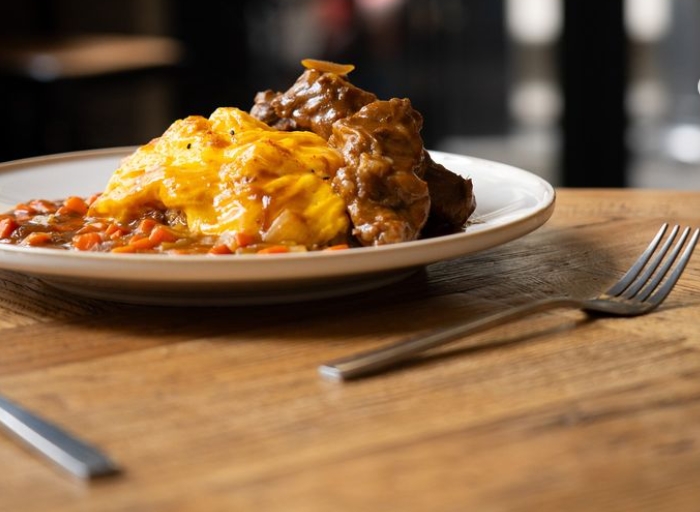 Savor the delightful fusion of flavors in our Omelette Rice with Apple Curry Beef Rib. This dish features fluffy omelette rice paired with tender beef ribs simmered in a rich apple curry sauce.